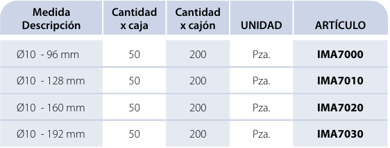 • En cajas conteniendo 50 pzas. • En cajón de cartón conteniendo 200 pzas. C/TORNILLOS
