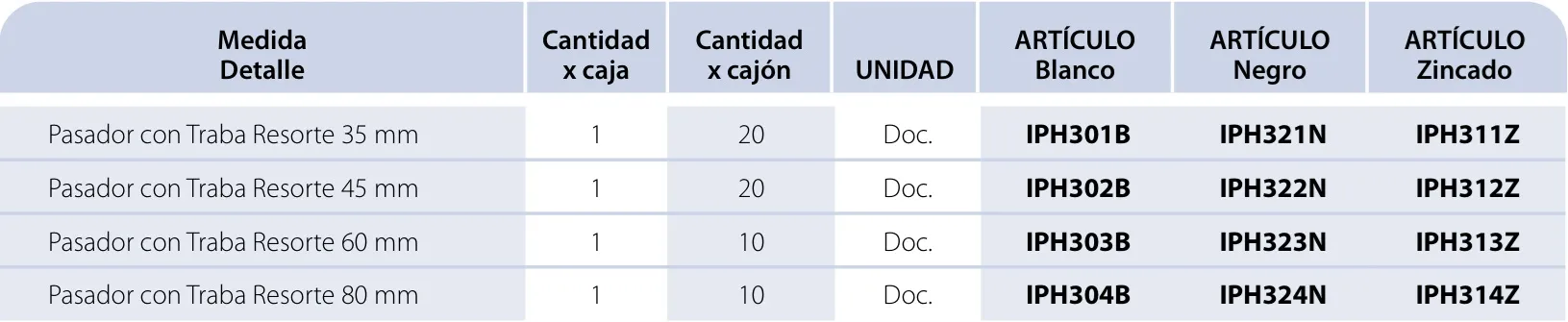 ESCUADRAS & PASADORES > Pasador con Traba Resorte