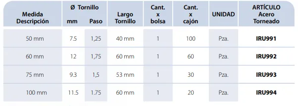 • En bolsa polietileno conteniendo 2 pzas. • Artículos por Cajón cerrado llevan descuento, ver Lista de Precios.