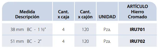 Embalaje: • En cajas de cartón. • A Artículos por Cajón cerrado llevan descuento, ver Lista de Precios. (cantidad mínima de venta es la caja)