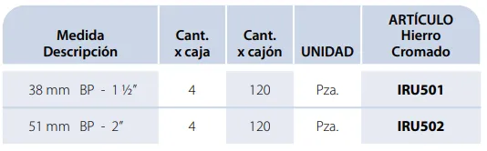 Embalaje: • En cajas de cartón. • A Artículos por Cajón cerrado llevan descuento, ver Lista de Precios. (cantidad mínima de venta es la caja)