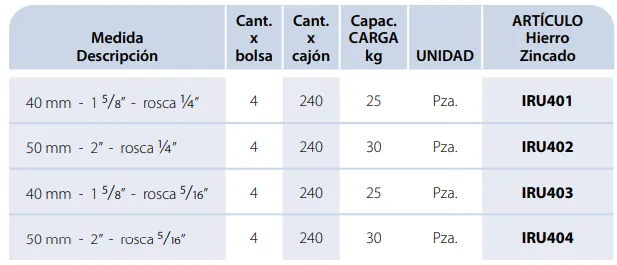 Embalaje: • En bolsas de polietileno. • A Artículos por Cajón cerrado llevan descuento, ver Lista de Precios. (cantidad mínima de venta es la caja)