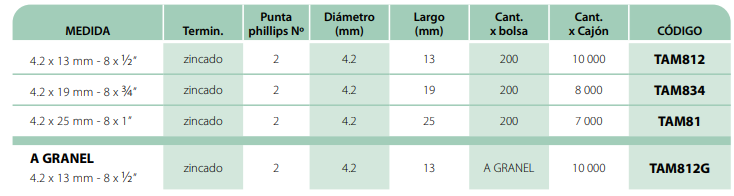 Tornillos Cabeza Flangeada - Punta Mecha (T1)