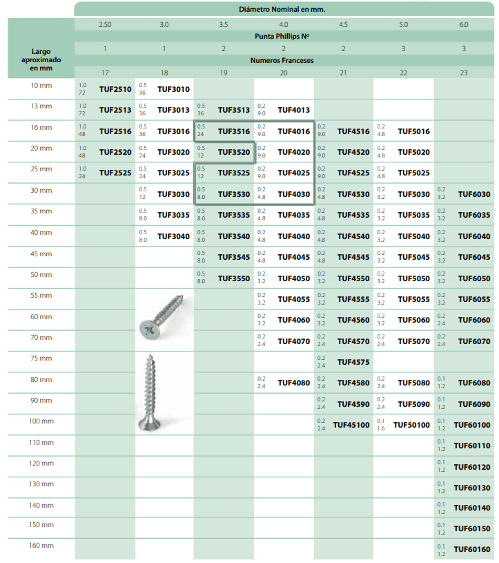 Material: Tornillos Cementados y Zincados Amarillo y Azul (ver medidas). Tornillos para fijación de muebles de todo tipo, maderas, aglomerados, no necesitan perforación previa. Tornillo Cabeza de fijación PHILLIPS.