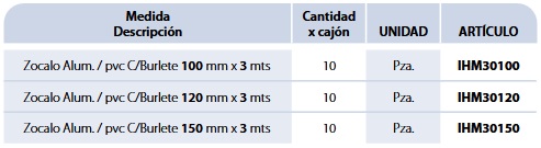 HERRAJES VARIOS P/MUEBLES > Zócalo Aluminio - PVC / con Burlete